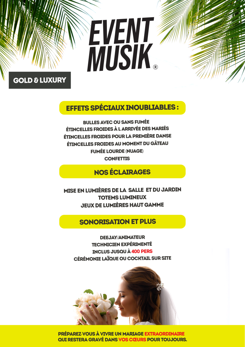 Réservez dès aujourd'hui et préparez-vous à vivre un mariage spectaculaire, où l'amour et l'élégance se rencontrent pour créer des souvenirs inoubliables. De plus, bénéficiez de la flexibilité de régler selon votre propre rythme.